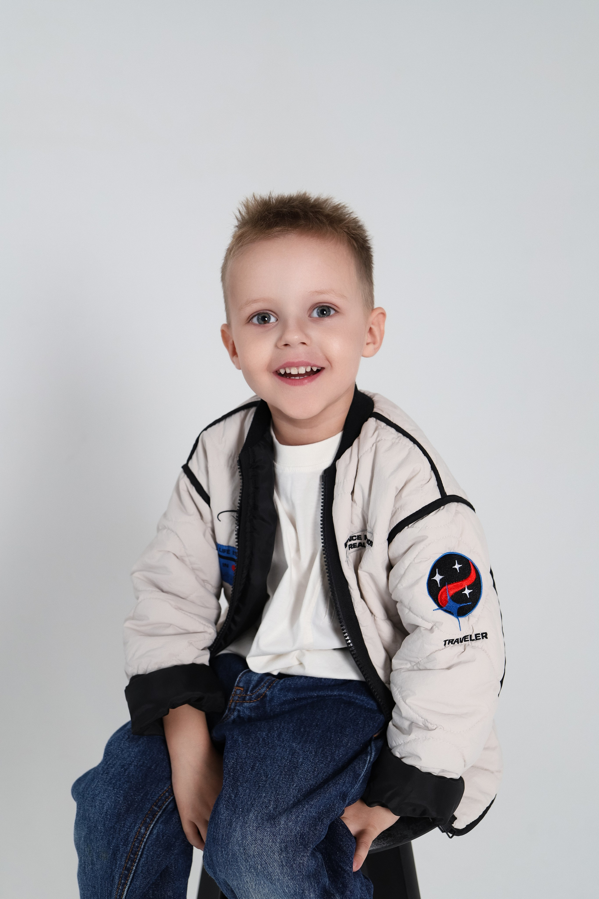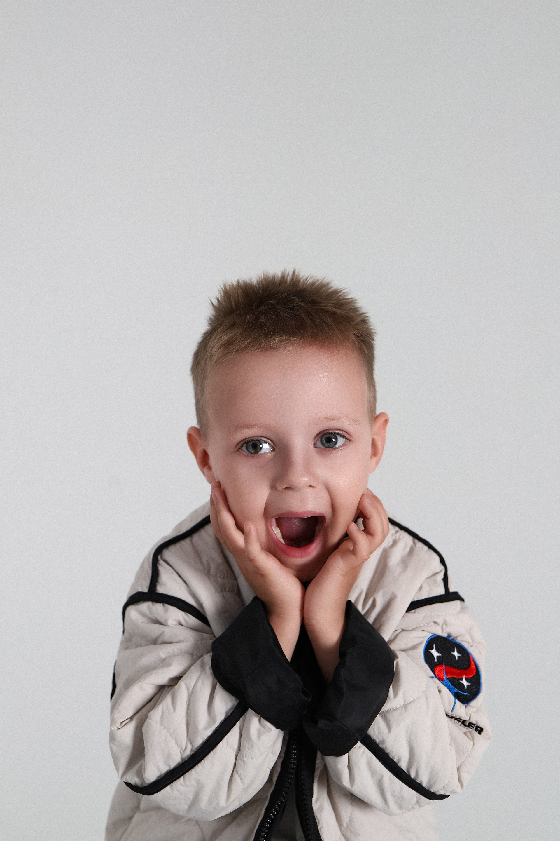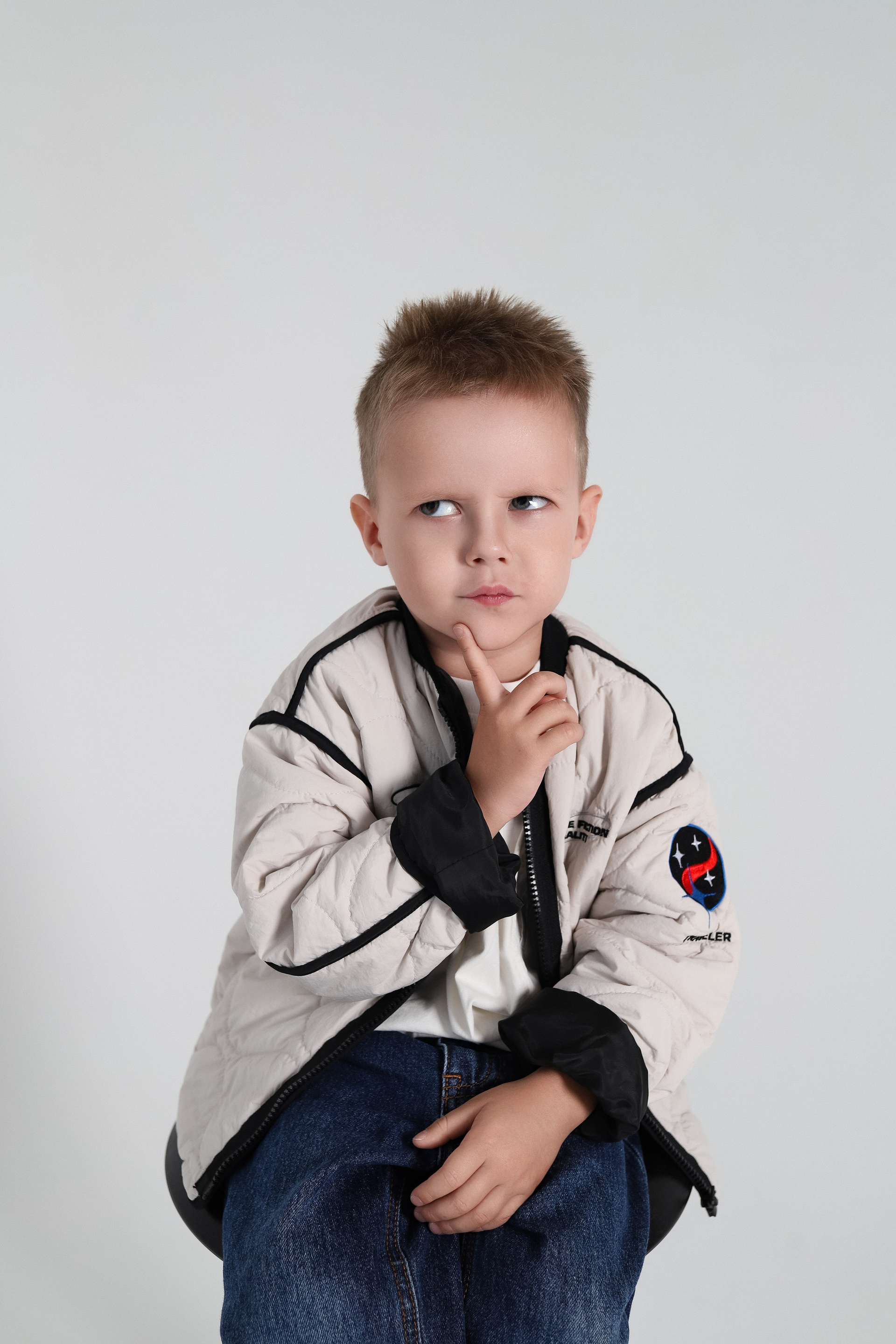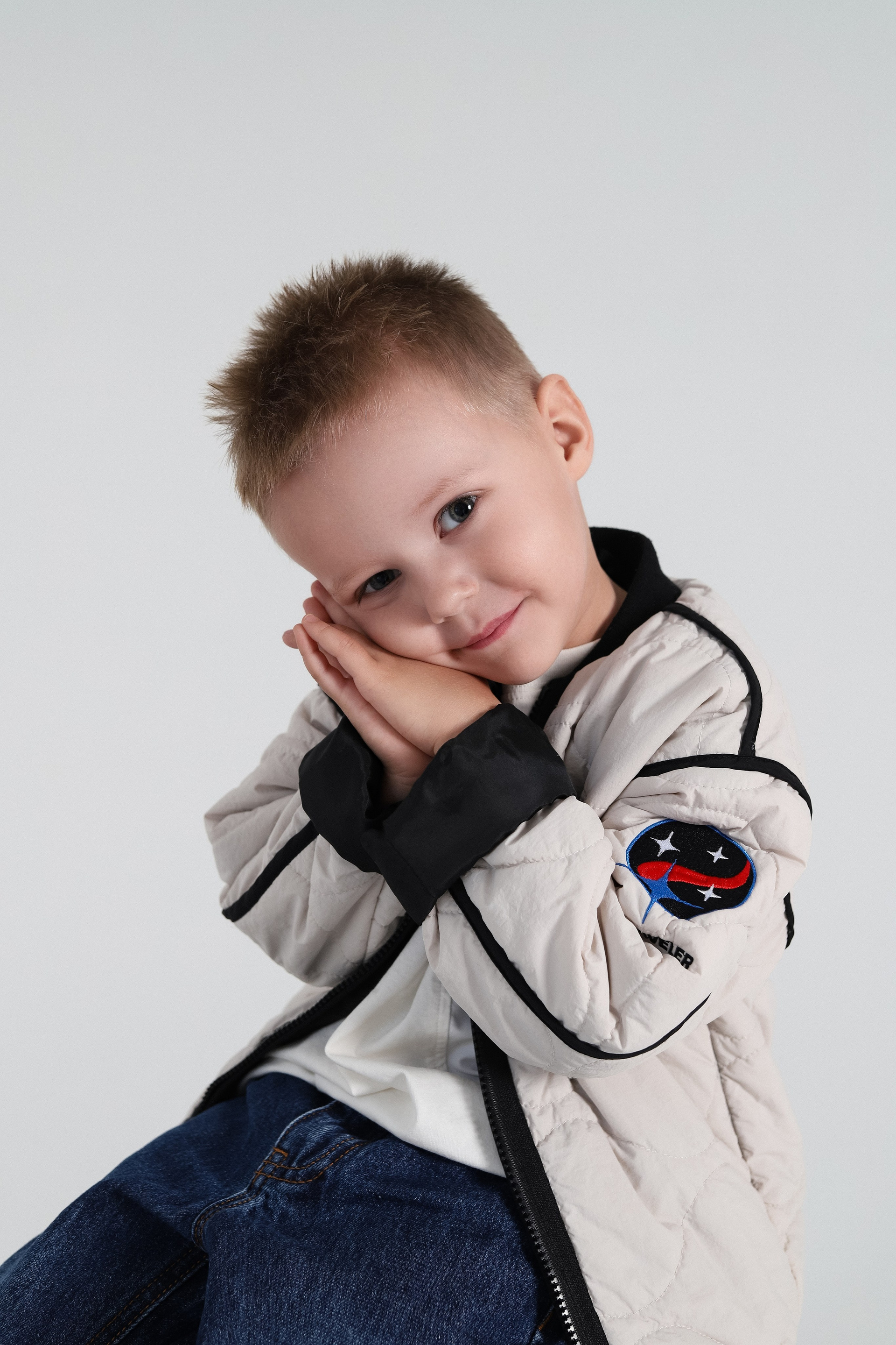 Индивидуальная студийная съёмка Артёма, 3 года — начинающего модели. Чистый фон, несколько образов и много игры, чтобы кадры получились живыми и настоящими.