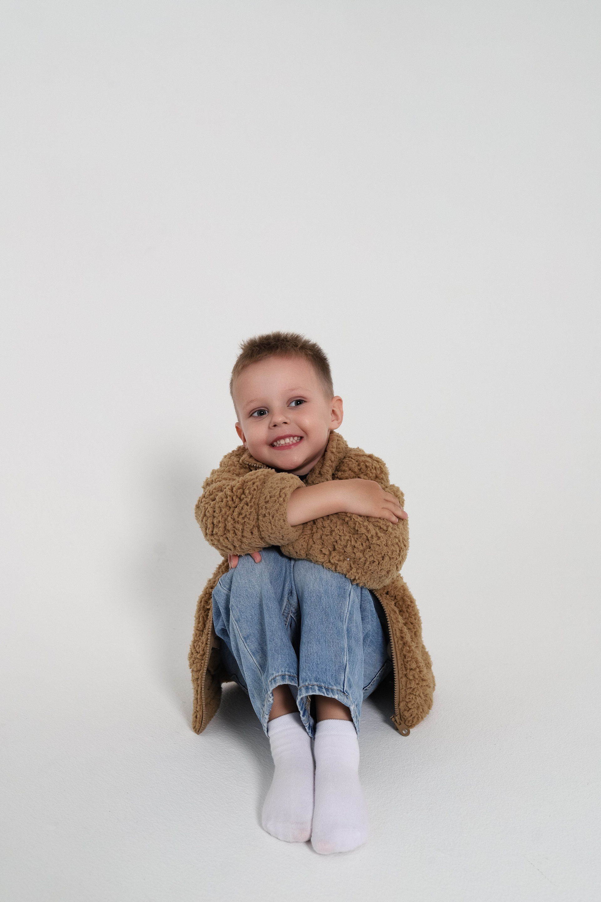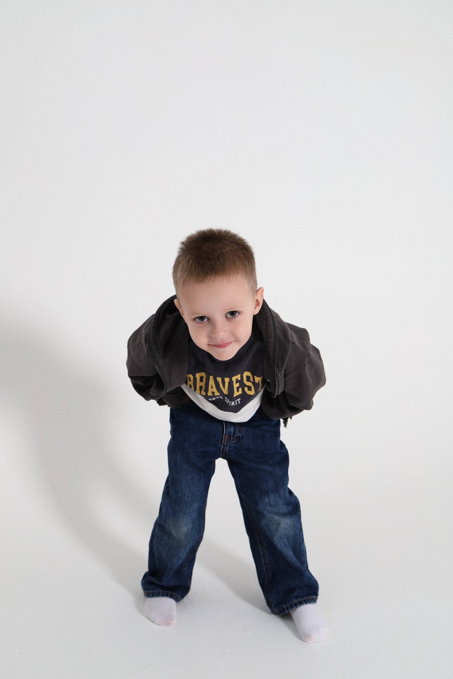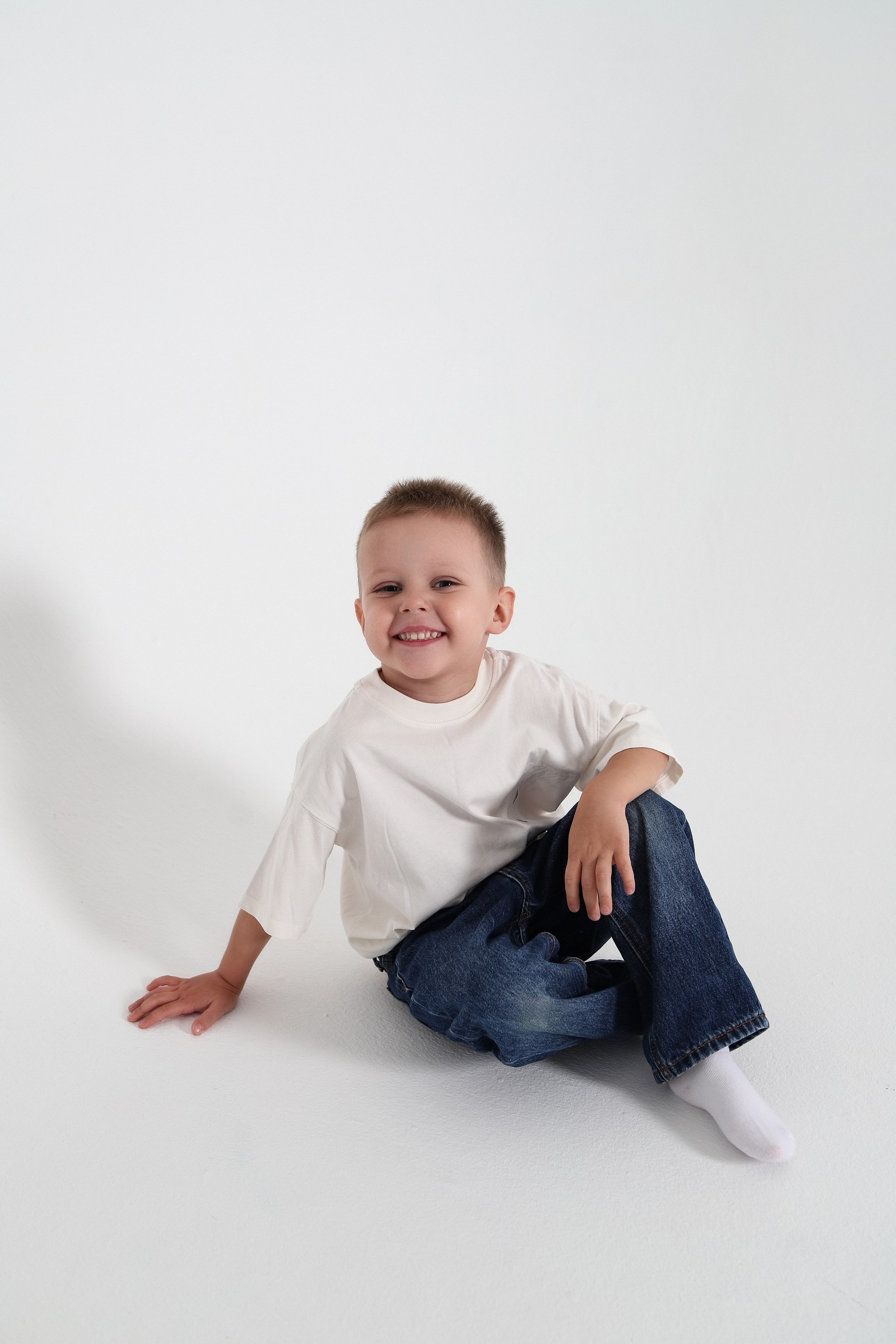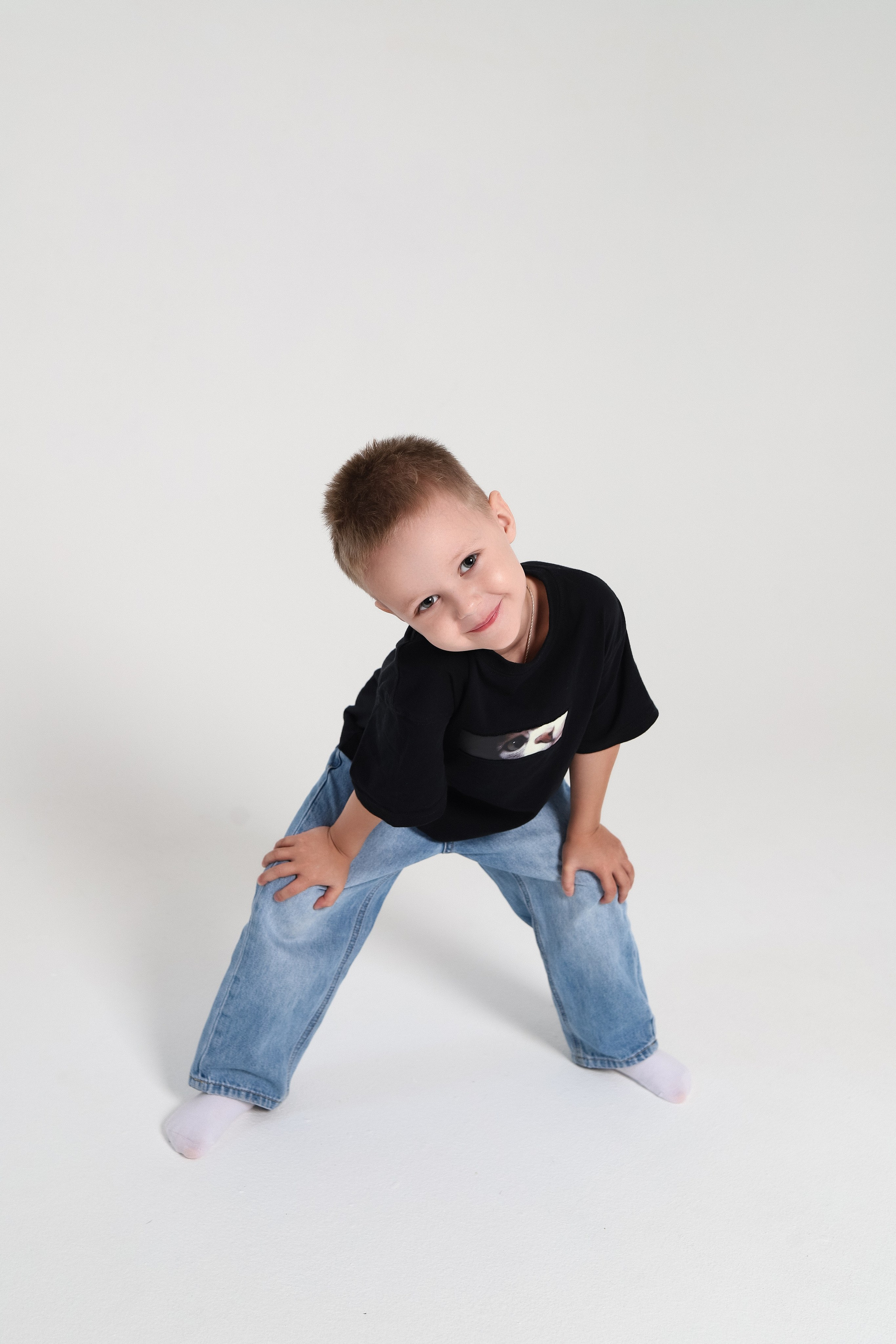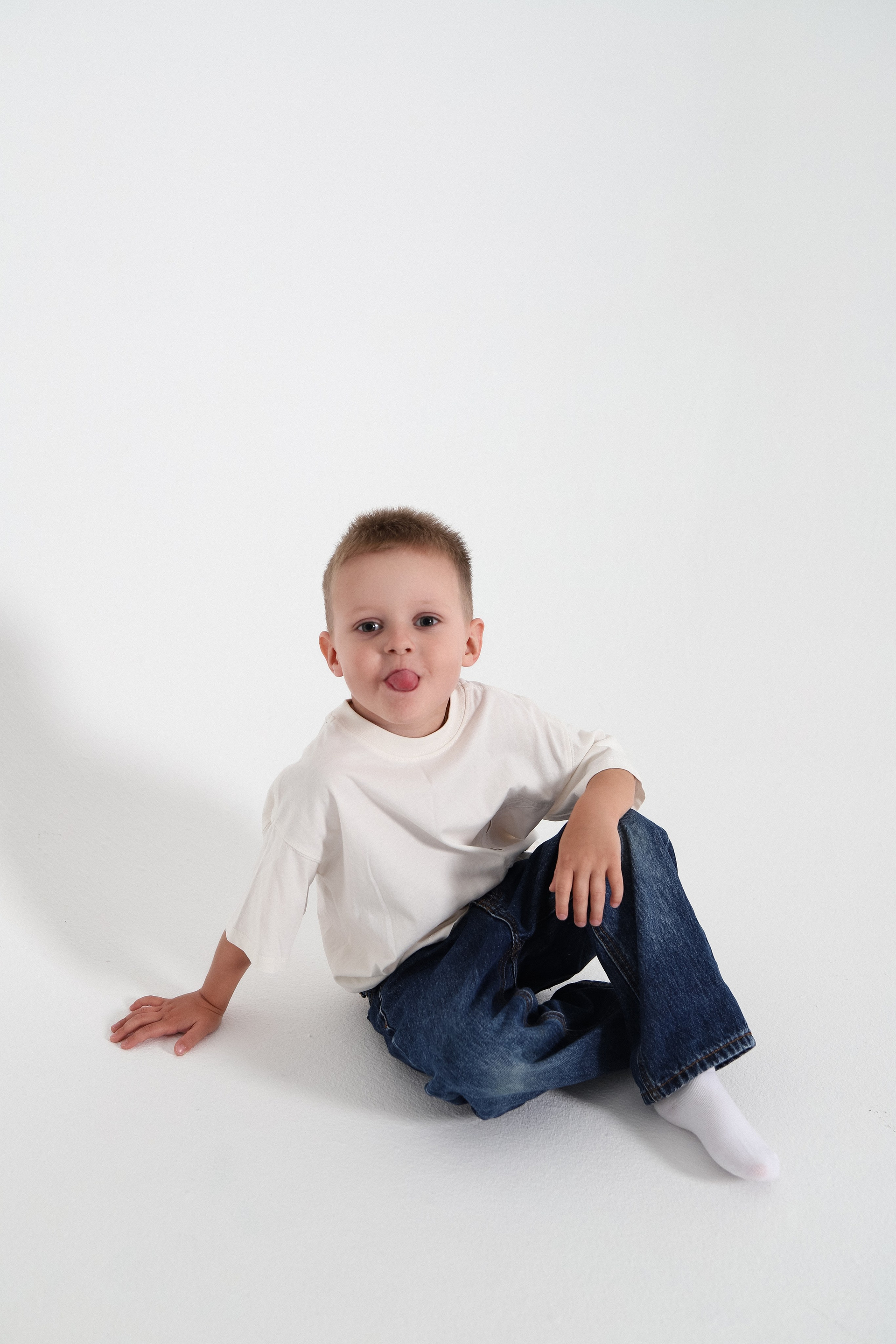 Индивидуальная студийная съёмка Артёма, 3 года — начинающего модели. Чистый фон, несколько образов и много игры, чтобы кадры получились живыми и настоящими.