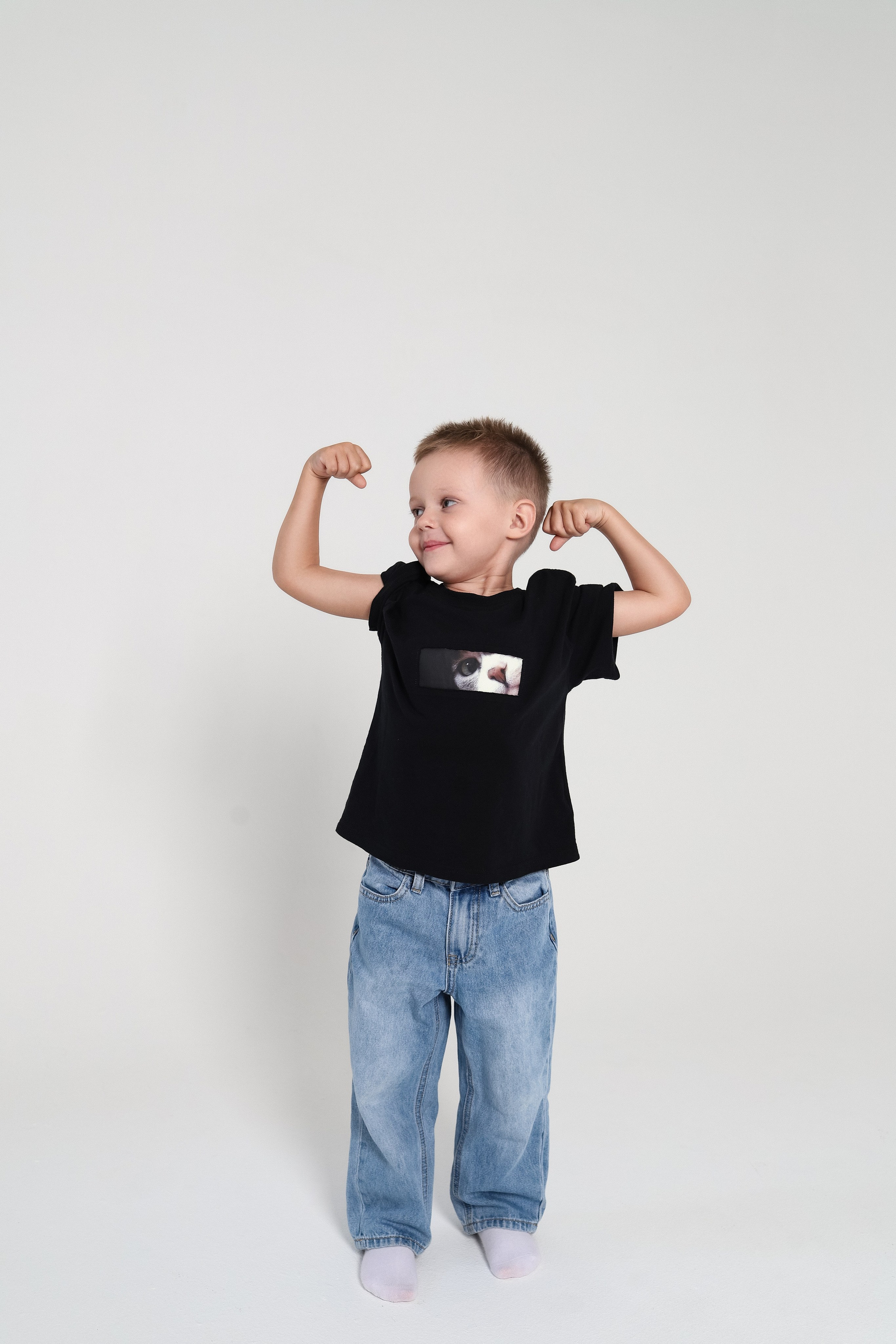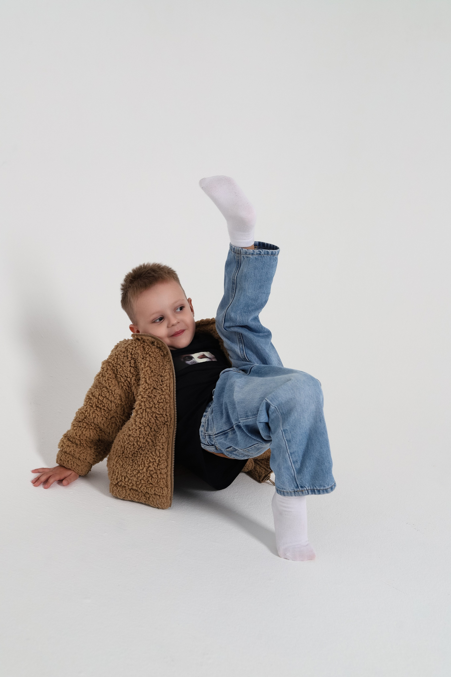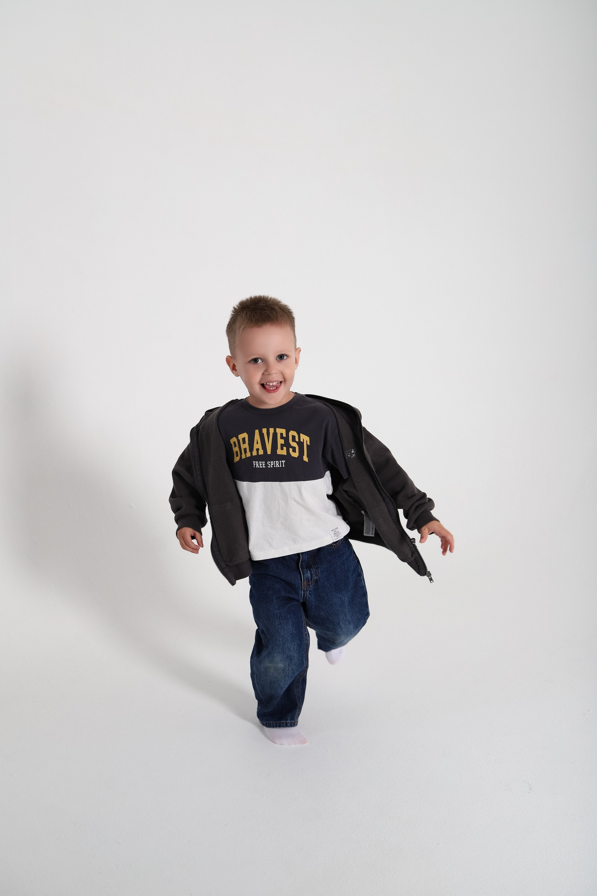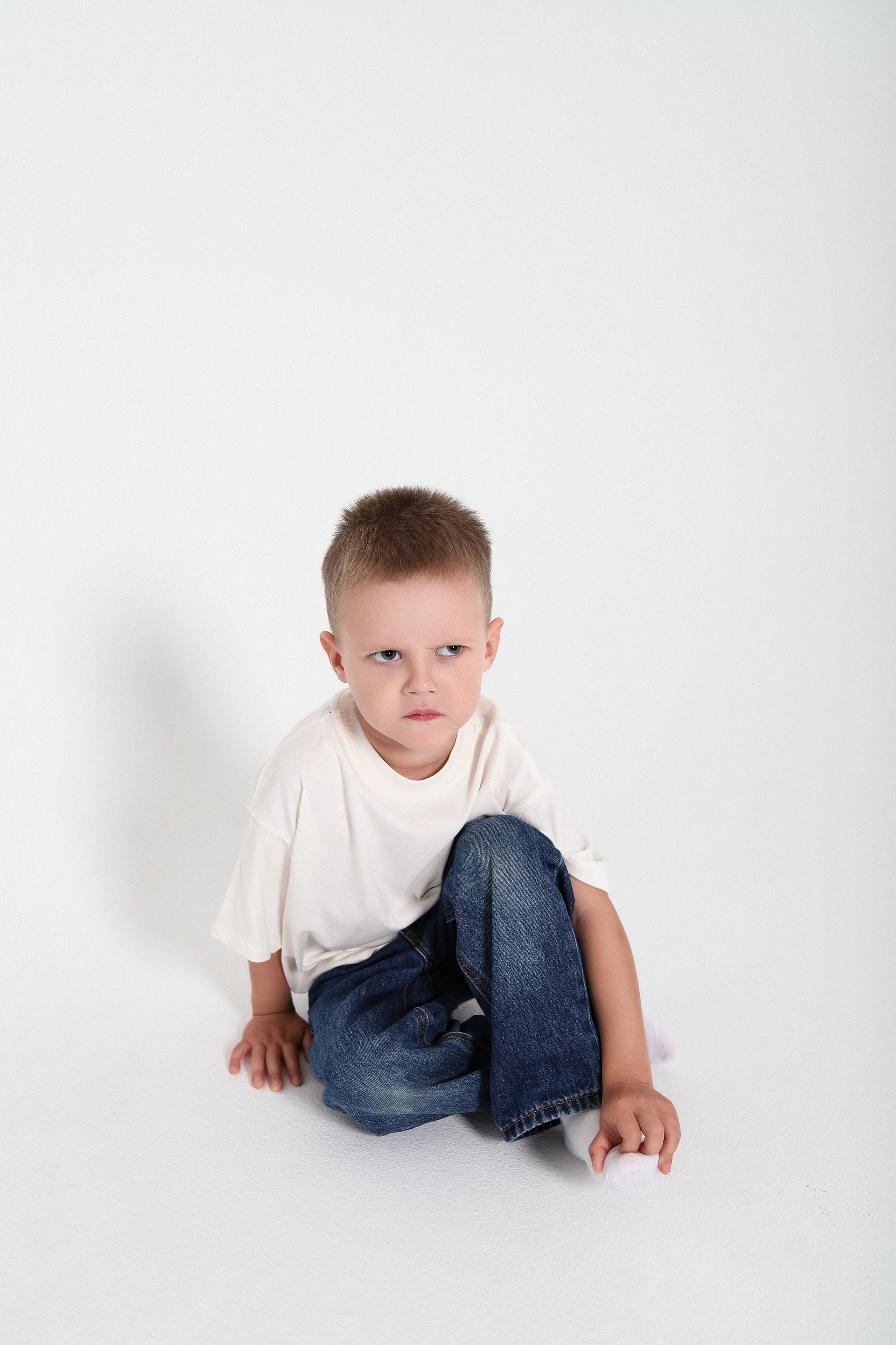 Индивидуальная студийная съёмка Артёма, 3 года — начинающего модели. Чистый фон, несколько образов и много игры, чтобы кадры получились живыми и настоящими.