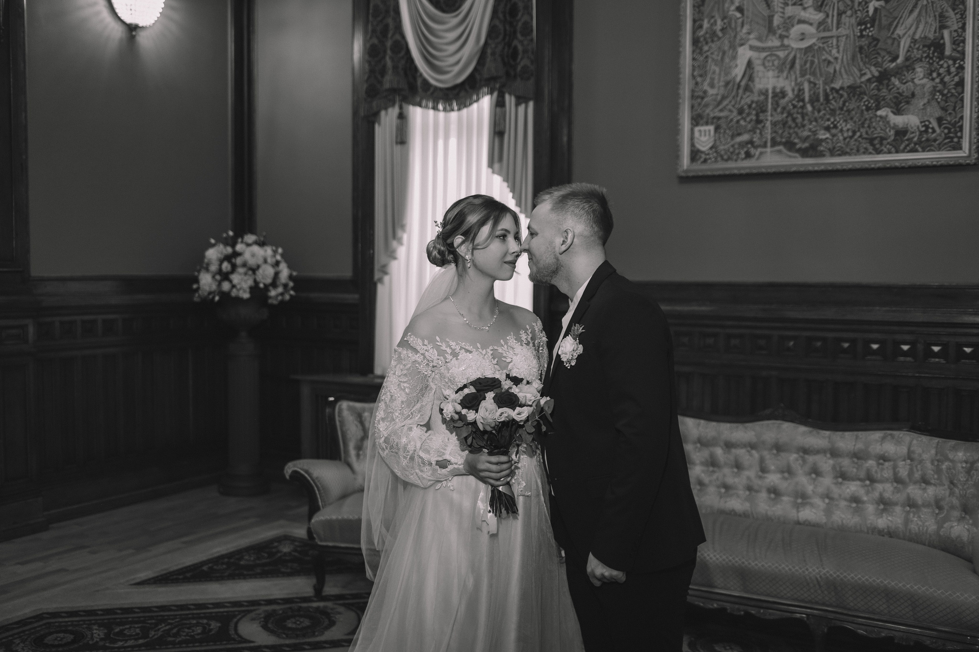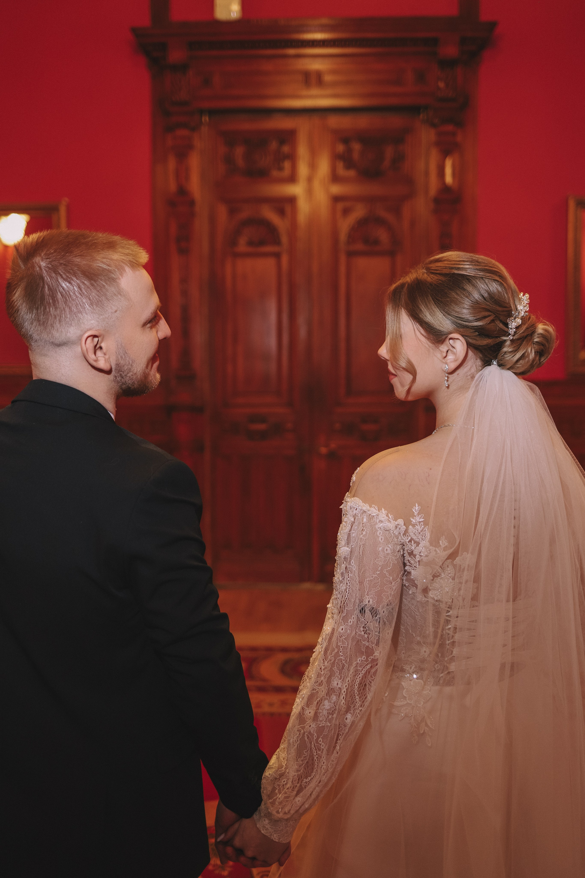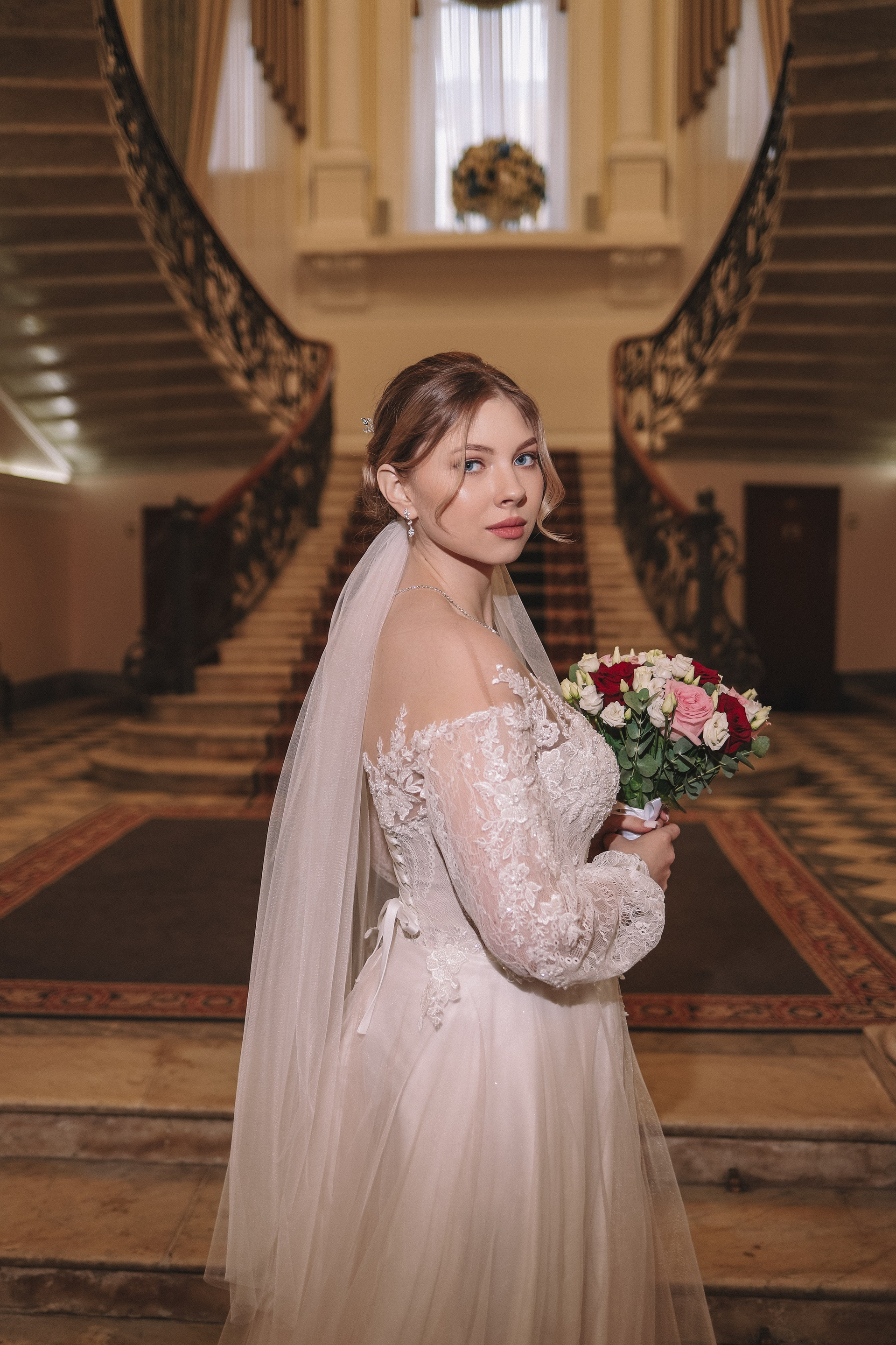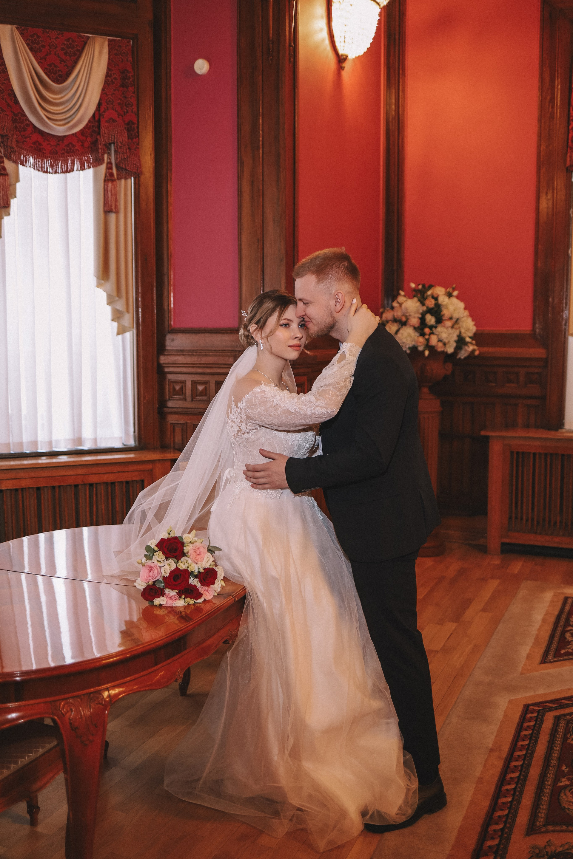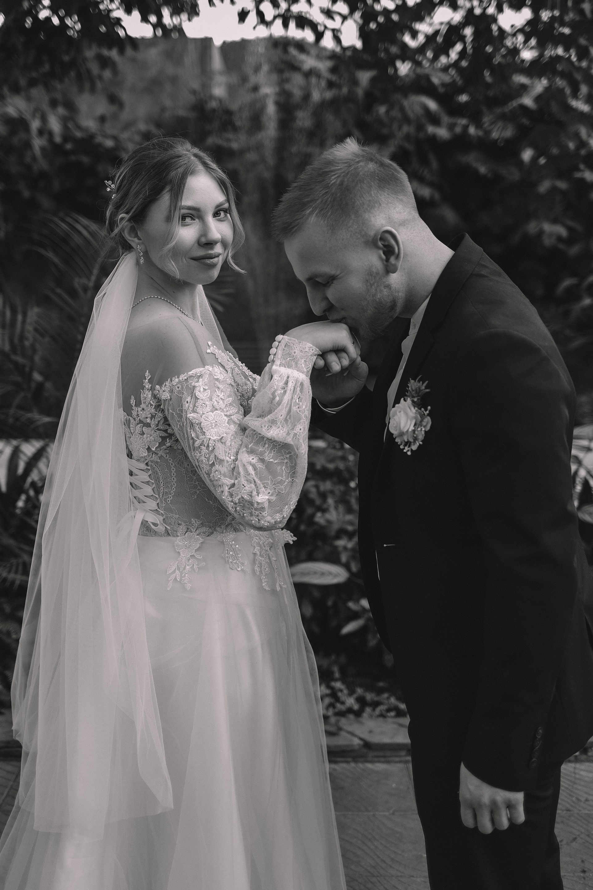 Тёплая свадебная фотосессия в зелёной оранжерее и в интерьерах ЗАГСа. Много живых моментов: прогулка среди растений, нежные портреты, детали образа и эмоции пары без постановки. Спокойный темп съёмки, естественный свет и внимание к мелочам — от букета до взглядов.